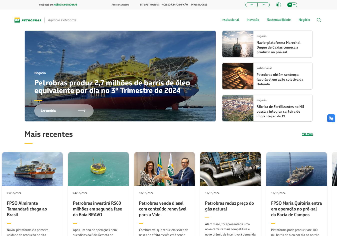 Agência de Notícias da Petrobras para comunicação com jornalistas e o público em geral.
